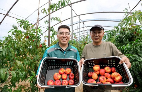 金银库村榛林湖采摘园里,蟠桃、黄桃、沙果等水果挂满枝头,在阳光的照耀下,折射出诱人的光芒。负责人张文锡对邮政满是感激:“邮政给我提供了收款码、打包邮寄、直播销售、包裹投递、存款等‘一条龙’服务,让我的日子越来越好、越来越方便。”